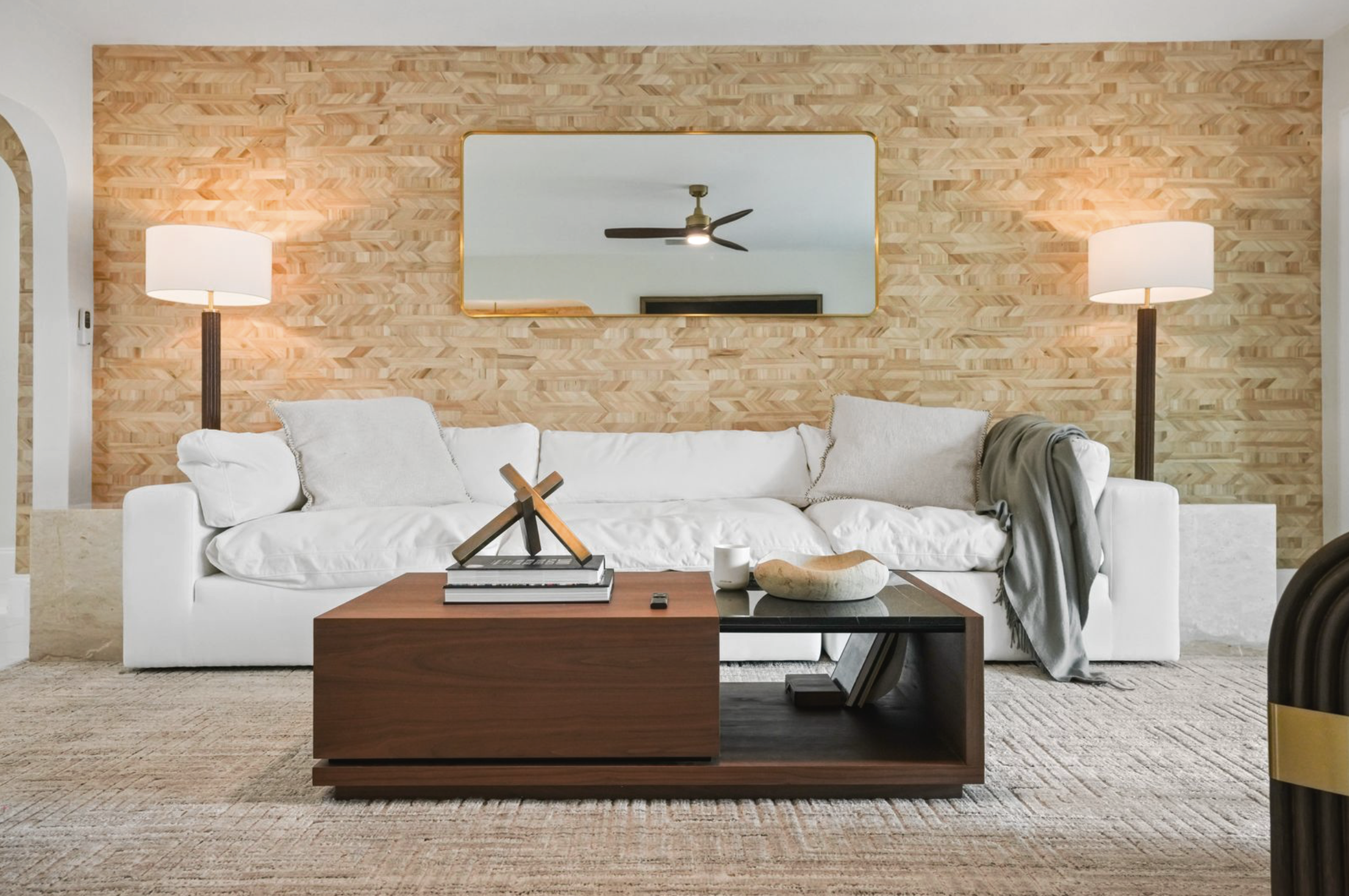 seek out Exclusively to Design to create unique and theme-oriented Airbnb and VRBO properties for their guests to experience a memorable visit! This casual, Tulum inspired design showcases relaxed seating, wood cut wall covering , slat wood finishes and multi-metallic accents. Each room offers the guest a different coastal experience while enjoying the numerous accoutrements your host brings!