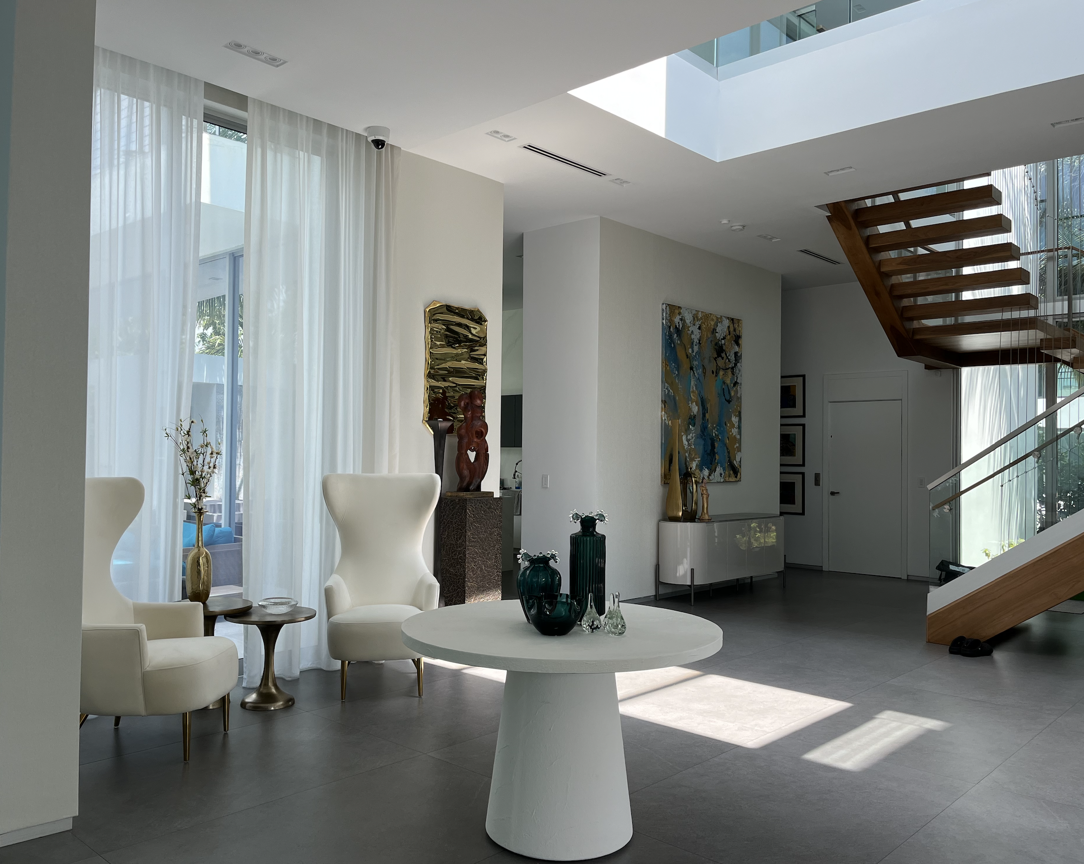 The client moved into a contemporary Hibiscus Island residence defined by expansive open space that felt cold and lacking in character. As part of our Miami luxury interior design services, the objective was to introduce warmth, architectural definition, and purposeful areas for living and entertaining.