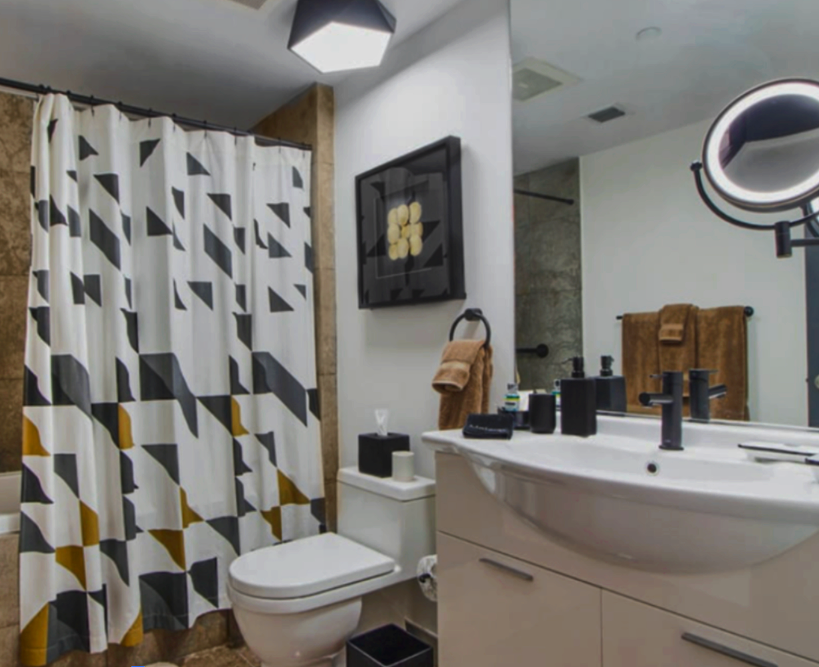 The project was designed to balance strong visual identity with practical functionality for short-term rental guests. Flexible furnishings allow the living space to convert easily between lounging and sleeping, while durable finishes and built-in storage solutions support the operational demands of frequent guest turnover. The result is an interior that delivers both style and performance within one of Miami’s most recognizable residential towers.