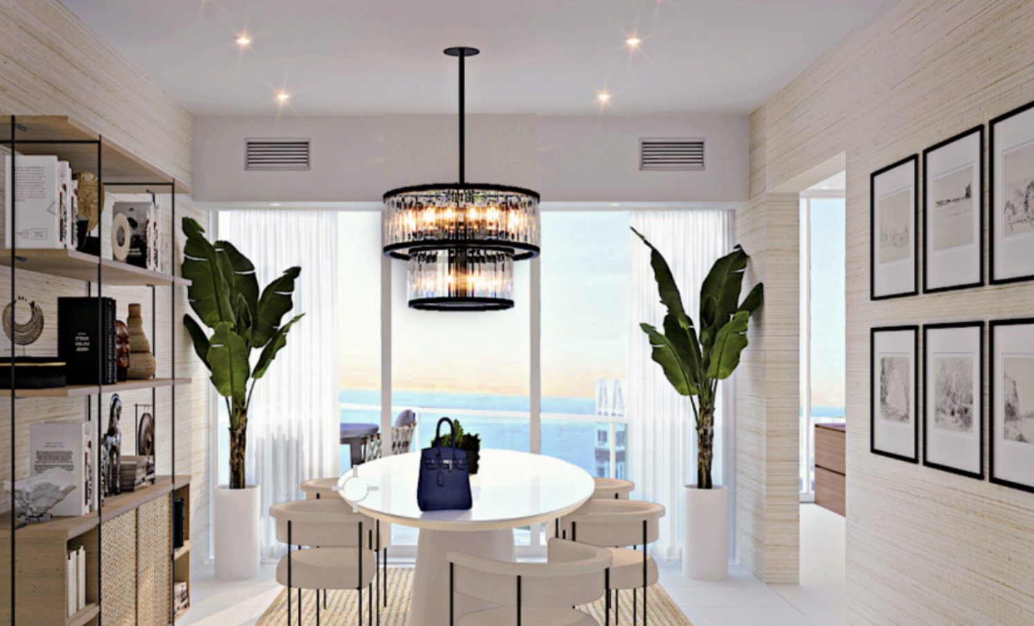 The remodel involved a comprehensive interior redesign and condominium remodel of the entire three-bedroom, three-bath residence beginning with the private elevator landing that introduces the home’s calm coastal palette. Interior walls were reconfigured to improve circulation and maximize natural light while framing the sweeping views of Fisher Island, the Atlantic Ocean, and the Miami skyline from the main living areas. Innovative space planning and design solutions combined with classic materials and multi-functional, tailored millwork establish a quiet, classic atmosphere that allows the surrounding water views to remain the defining feature of the space.
